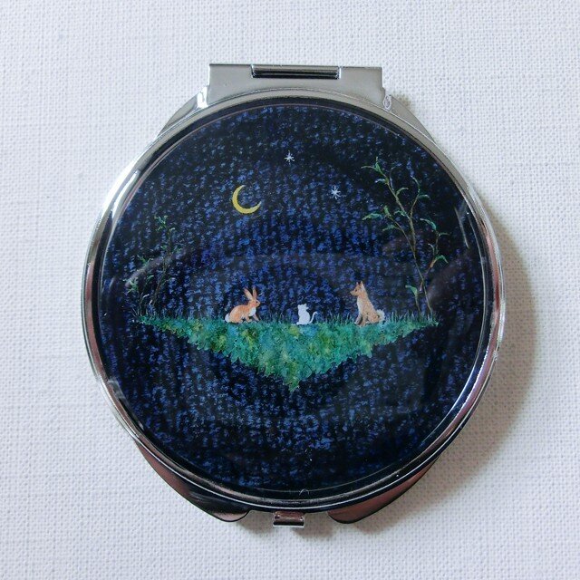 けものみちでばったり出逢ったうさぎと子ねこといぬを描いたオリジナルイラスト(原画)を樹脂でとじこめました。