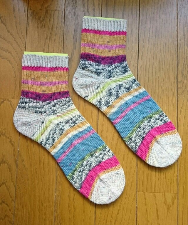 ドイツ製靴下用毛糸 OPALで編んだメリヤス編みの靴下です。