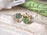 原石のグリーントルマリンとダイヤモンドクォーツのピアス