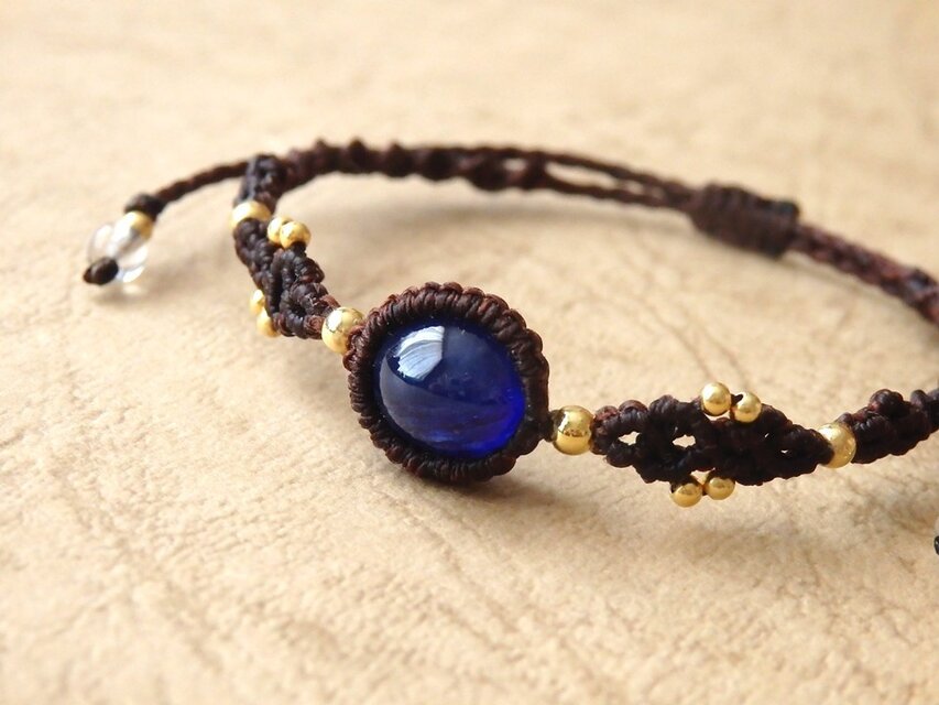 ■材料:ワックスコード、メタルビーズ、水晶ビーズ