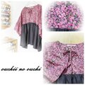 リバティタナローン人気柄のWILTSHIRE ウィルトシャーrose ibis系としっとりリネンチャコールブラウンでギャザーがたっぷり入ったポンチョ風なショートブラウスを作りました。