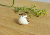 和菓子屋さんからゆずりうけたひよこまんじゅうの型にひとつひとつ土を込めて、ちいさなひよこを作りました。こちらは4月の新作すずめ。以前からイベントなどでリクエストの多かったすずめ、ようやく形にすることができました。ふくふくとした見た目がかわいらしいです*受注制作でお作りしています。