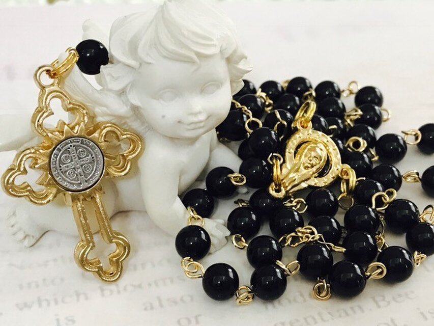 お品受取りしました。2つ共に良い出来上りで、丁寧に包んで下さり有難うございました。 このような大きな玉とメダイで大変だったのではないかと申し訳なく思います。