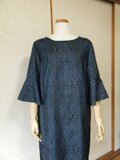 シンプルなデザインのAラインワンピースですが、袖口の切り替え位置に、たっぷりのフレアーを付けました。