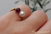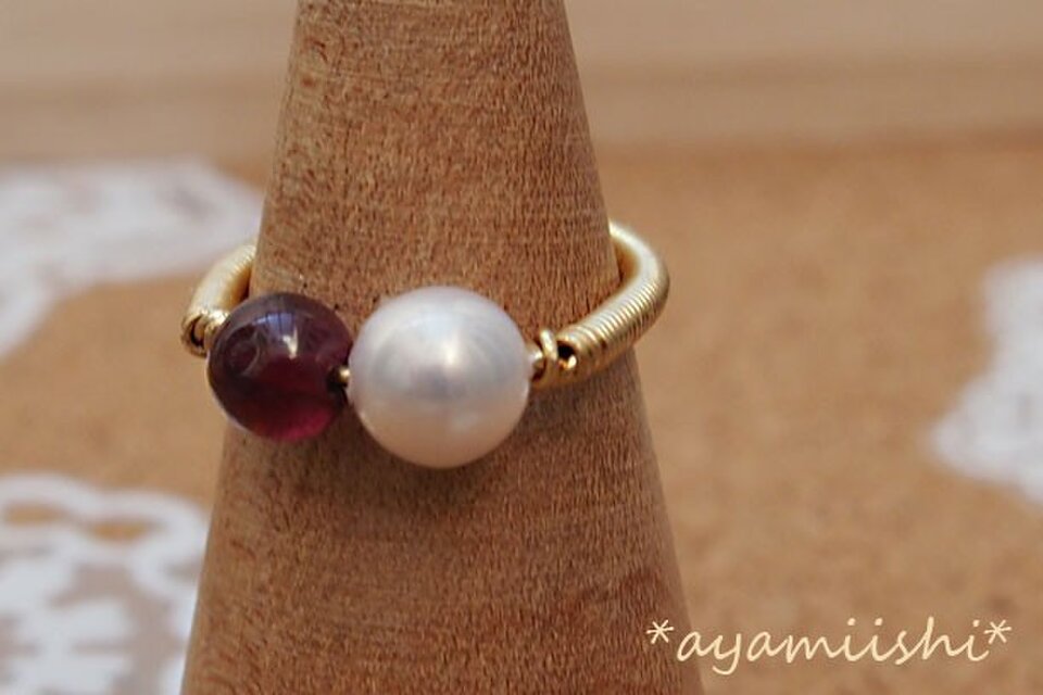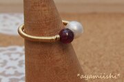 ガーネットとヴィンテージパールを並べて、ワイヤーでピンキーリングを作りました。