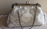 銀糸の袋帯を解いた生地で本体を作り、