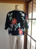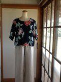 紺地に大きな薔薇の模様が素敵なブラウスです。