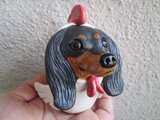 2017年の干支である「酉」の着ぐるみを着たダックスフンドの置物です。