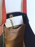 両面の印象の違いとバッグを開いたときに、楽しくなることをコンセプトにした一点モノのデザインです。