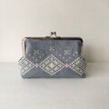 ブルーグレー系色のリネン生地にアイレット・ステッチで模様を刺繍しました。