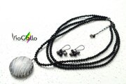 『ゼブラジャスパーとフロストオニキスの三連ネックレス』と揃いになります。