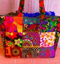 マチの部分は珍しい別珍のプリント70年代のものかと思われます。全体にキルト芯が入っているのでしっかりしています。