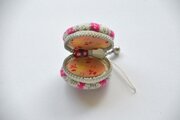 伝統的な柄を組み合わせて織ったマカロンポーチです。