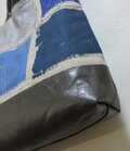 ユニークな筆描き模様のキャンバス生地を4枚縫い合わせました。