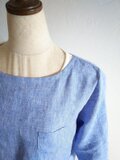 初夏の海みたいな青とオフ白のダンガリーリネン。