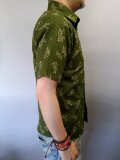 新作手作り半袖和柄シャツ(鳥獣戯画)緑