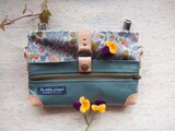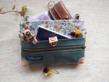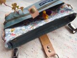 ベッツイ(リバティ)のビニールコーティング生地を使用しています。お洗濯はできませんが、汚れがついてもふきとれます。大小二つのポケットと、ファスナー付きのポケットが付いています。