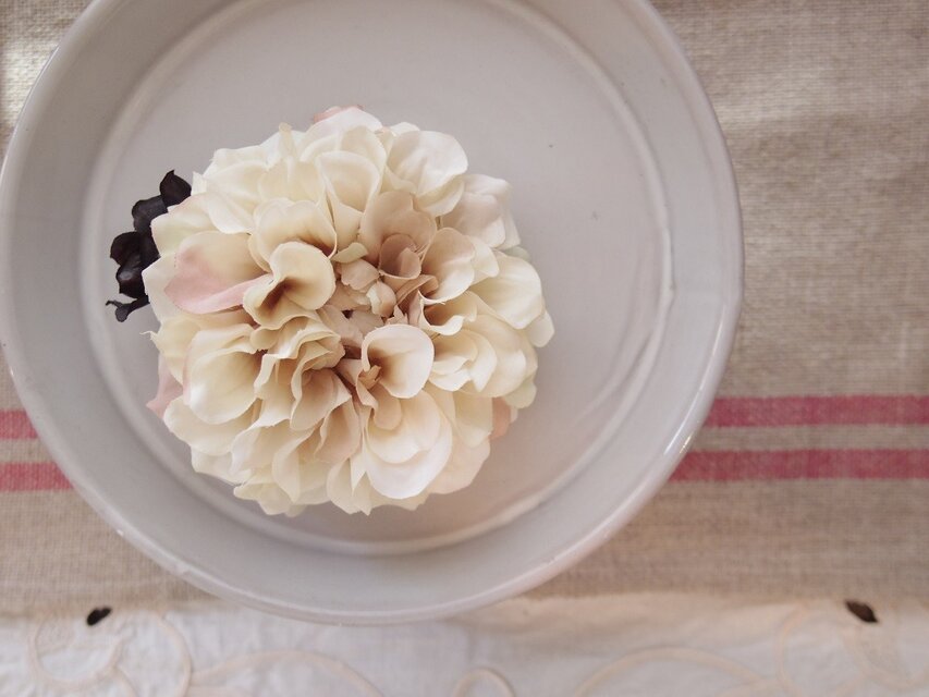 ベージュのダリアとチョコアジサイのコサージュ c-12