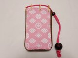 スマホケース 煙草入れ ポーチ 帆布ピンク色地製 七宝 胡粉