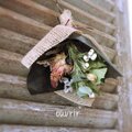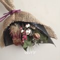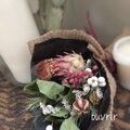 ピンクのペッパーベリーを入れ、ブラックのワックスペーパーとジュートで包んでいますので、そのままプレゼントにも最適です。