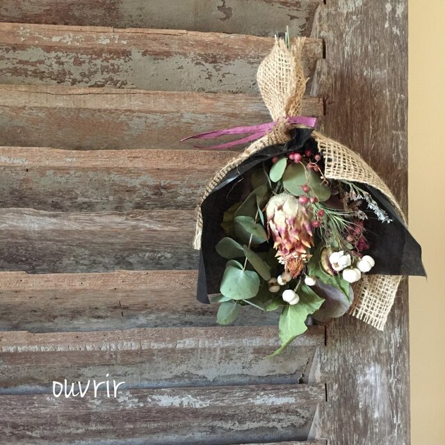 ドライフラワーは、時間の経過とともに少しずつお色味がアンティークなベージュ色に変化していきます。その変化もお楽しみいただけます。
