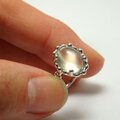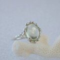透明感のある淡いグリーンのムーンストーンを粒飾りのリングに仕上げました。