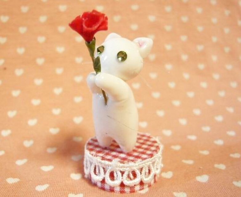 。 にゃんこのしっぽ○母の日カーネーション○ミニチュア○白猫1
