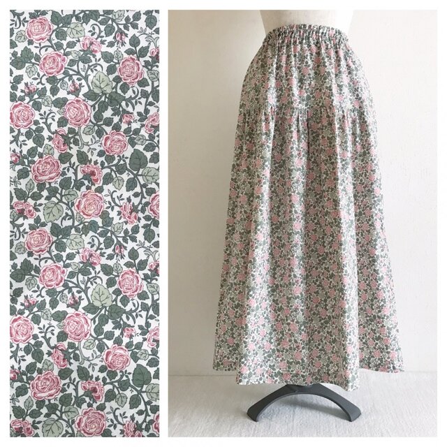 蔓薔薇、蔓薔薇。可愛らしい小ぶりの薔薇に抱かれる、そんな幸せが味わえるスカートです。