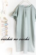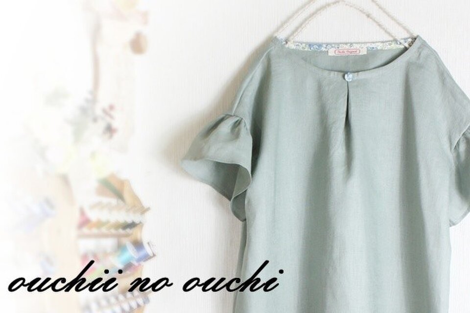 柔らかくしなやかなしっとりしたダークシーグリーンリネン100でお作りしましたラッフルスリーブワンピースです。