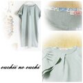 ドロップショルダーの身頃にギャザーの可愛いお袖がついたワンピで
