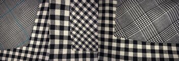 黒×白のチェックで、ポケットは共布の他にいろいろなチェック生地を使用しました。