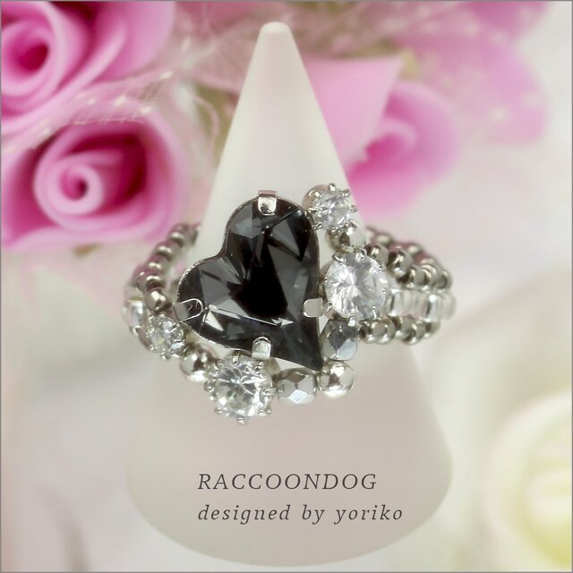 ビーズ,リング,コスチュームジュエリー,スワロフスキー,ビーズアクセサリー,ビーズアクセ,ハート,シルバー,ビーズリング,クリスタル,チェコビーズ,ジルコニア,母の日,プレゼント,贈り物