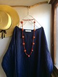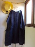 I様ご予約品 リネン100 ビックポケット付きワンピース ペンシルストライプ ダークネイビー