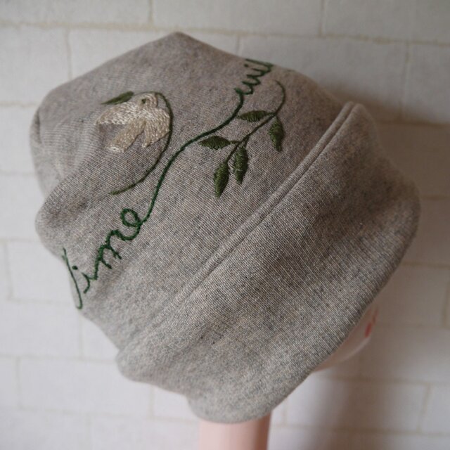 コットン100%のスエット生地で作ったニット帽(Time will heal)