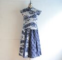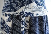里山模様の浴衣生地と匹田模様の浴衣生地で、中国風のセットアップを作りました。