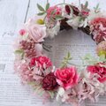 プリザーブドフラワーを中心としたアーティフィシャルフラワーをミックスしたリースです。