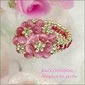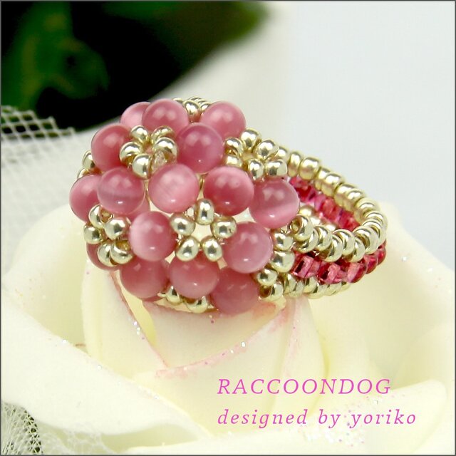 ビーズ,リング,コスチュームジュエリー,スワロフスキー,ビーズアクセサリー,ビーズアクセ,キャッツアイ,ガラス,ビーズリング,ピンク,花,ローズ,母の日,プレゼント,贈り物,キラキラ