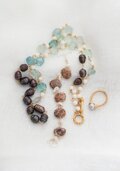 全長18cm、リスト周り14-15cmくらいの方にほどよくフィットします。最近制作したネックレスとリングとのコーディネートもご覧ください。