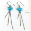 ヒトデ型のターコイズに長めのチェーンが揺れるピアスです。