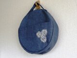 目の詰んだデニムをベースに、中に当てたのは、ブルー系の小花プリントに刺繍を重ねてある凝った布地です。