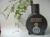 「蚊取りSL C11207」は、鉄分の多い赤土と鉄分の少ない並土をブレンドし、ロクロ成形した本体に煙突と車輪、11207プレート、ヘッドマークを付け、灰釉を掛け1240度で焼き上げ、煙で燻して赤黒い色を出しています。