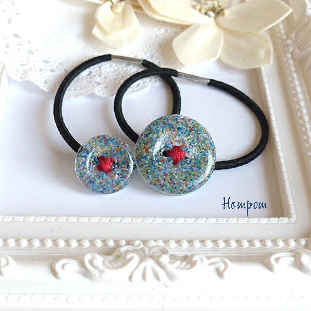 親子お揃いで カラフルカラーボタンのヘアゴム ホムポム