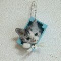 小さい羊毛フェルトのサバトラでオーナメントを作りました。