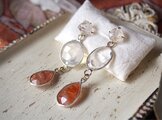 素材:サンストーン・ムーンストーン・ダイヤモンドクォーツ・シルバー(石枠)・K14ゴールドフィルド(ピアス金具)