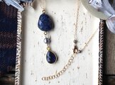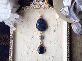 素材:ラピスラズリ・サファイア・グレーパール・シルバー(石枠/ゴールドプレート)・K14ゴールドフィルド(チェーン)
