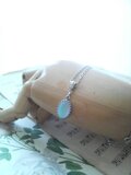 フロスト調の水色がとても美しい、ヴィンテージグラスカボション(約14×10ミリ)でお作りしましたネックレスです。