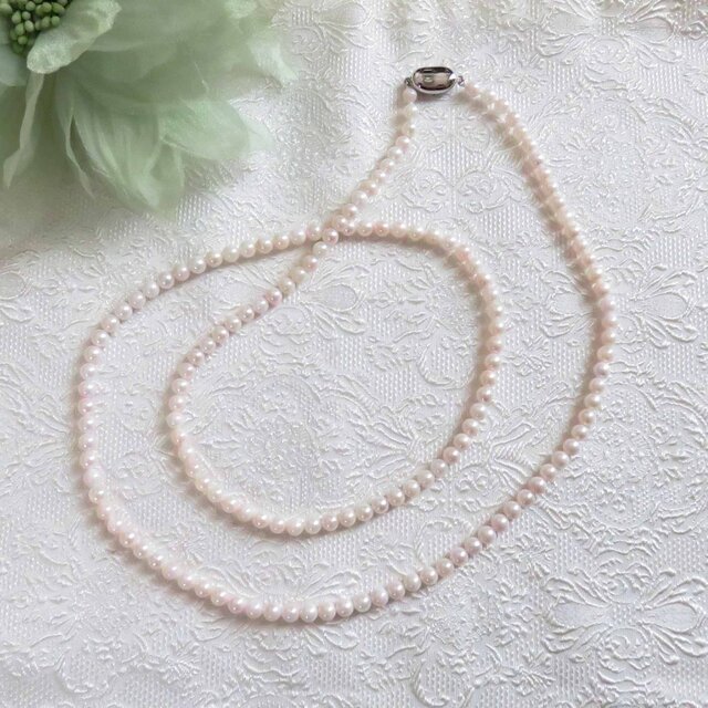 パールのロングネックレスは、色々な場面でお使いいただける万能なネックレスです。