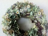 趣きのある秋色あじさいと、花かんざし、ブリザーブドフラワーのかすみ草、ミニコーンのシンプルでボリュームのあるリースです。