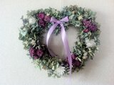 薄水色のあじさいをベースに、バラ、ミニシルバーデージー、ミニコーンをアレンジした可愛らしいハートのリースです。