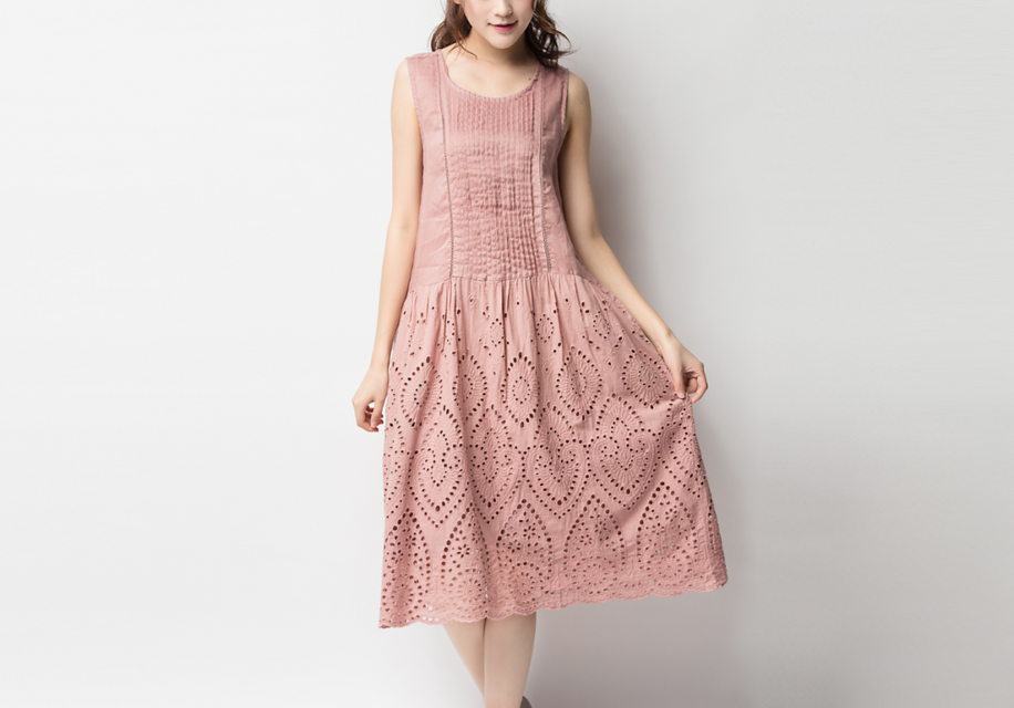 ノースリーブのコットンのワンピース到着しました。斜めに重なった裾のレースがとてもステキです。有難うございました。